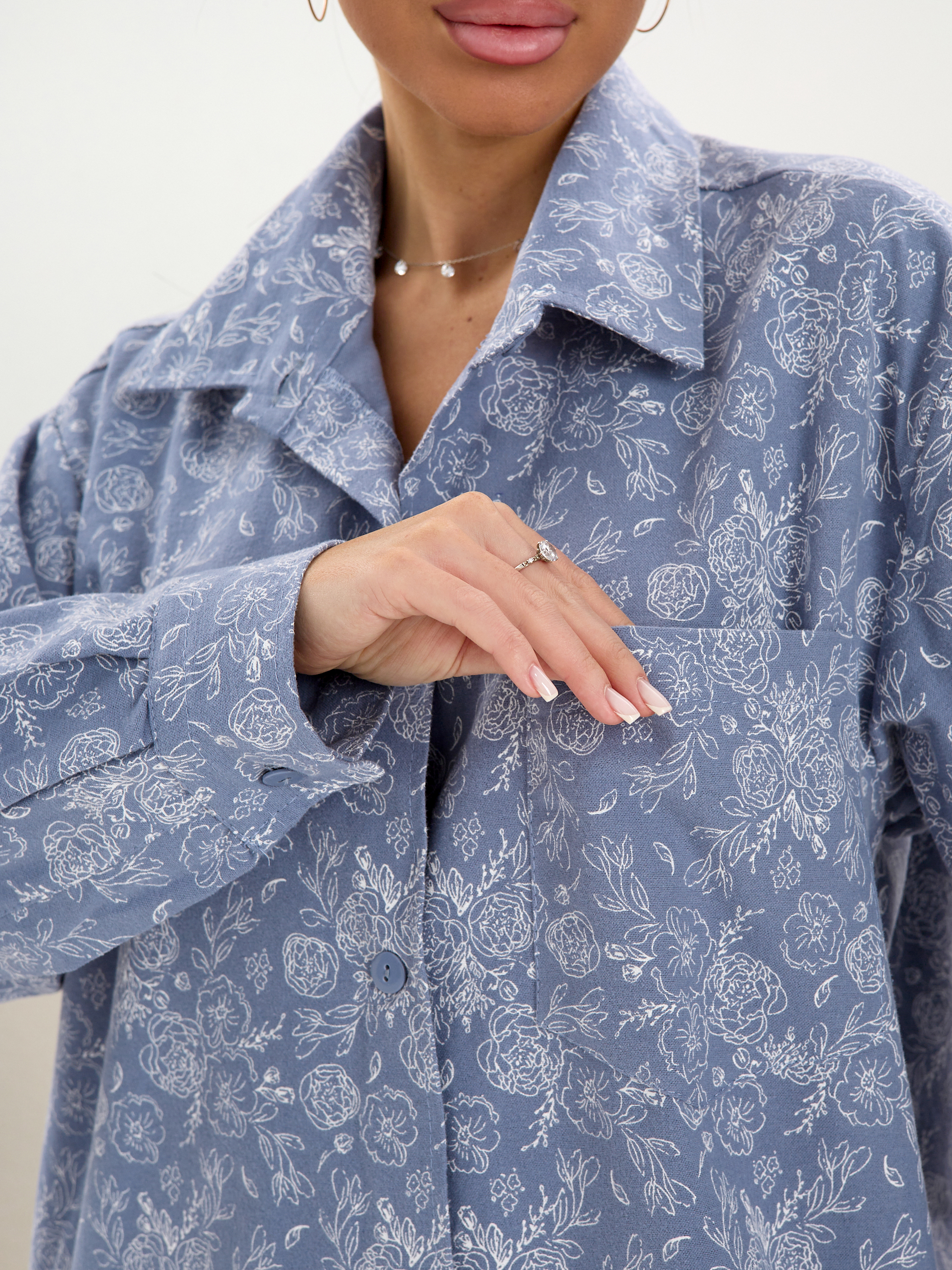 Главная Женская одежда Фланель Халат-рубашка фланель м41пионы