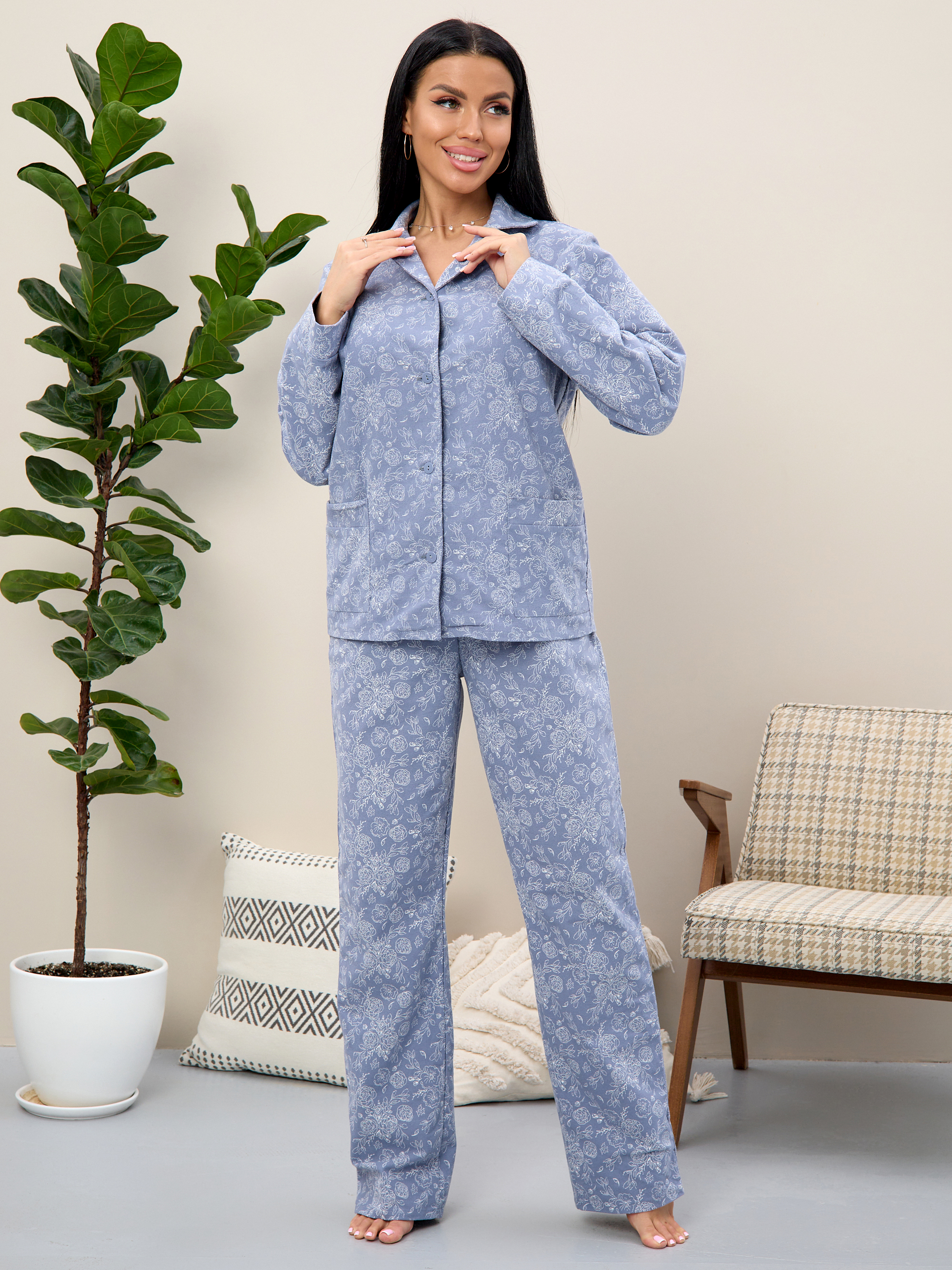 Главная Женская одежда Фланель Пижама женская м15 пионы