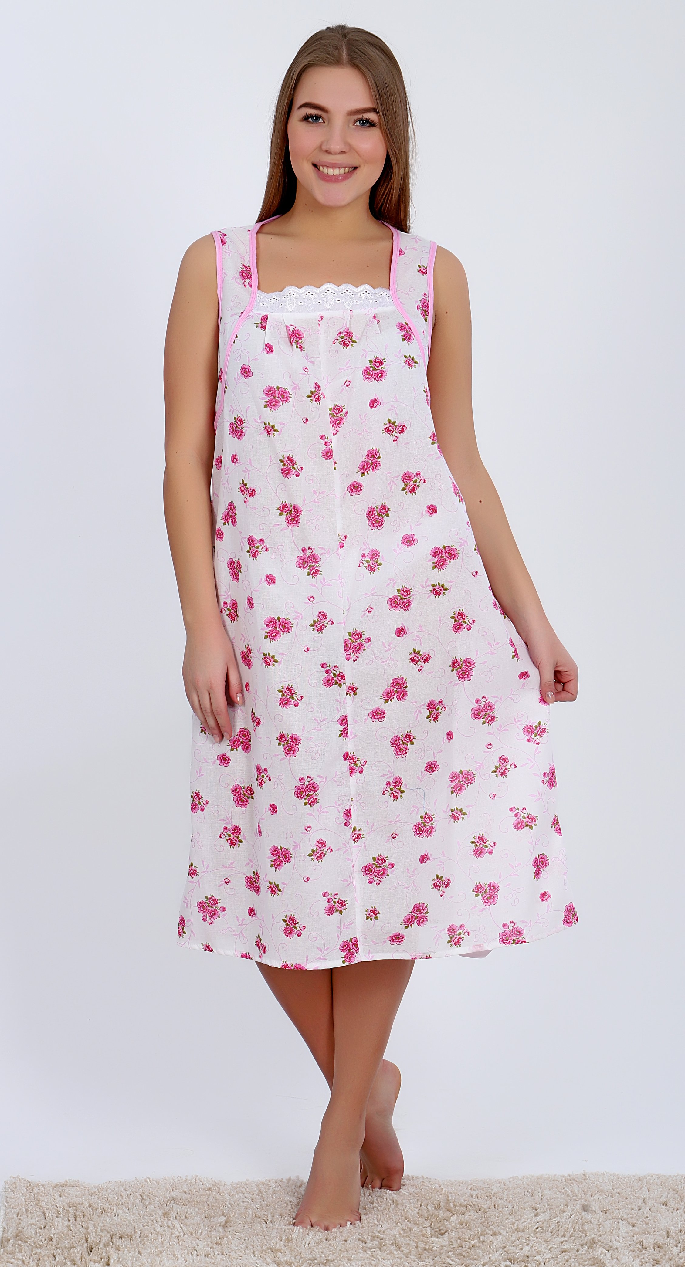 Ночная сорочка женская из ситца розовая